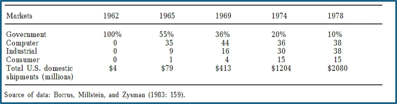 1970年代、軍事・防衛市場は半導体市場の20%以上を占めていましたが、1978年にはすでに10%にまで低下していました。